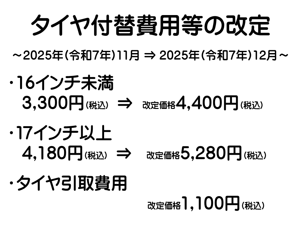 ・タイヤ付替費用等の改定