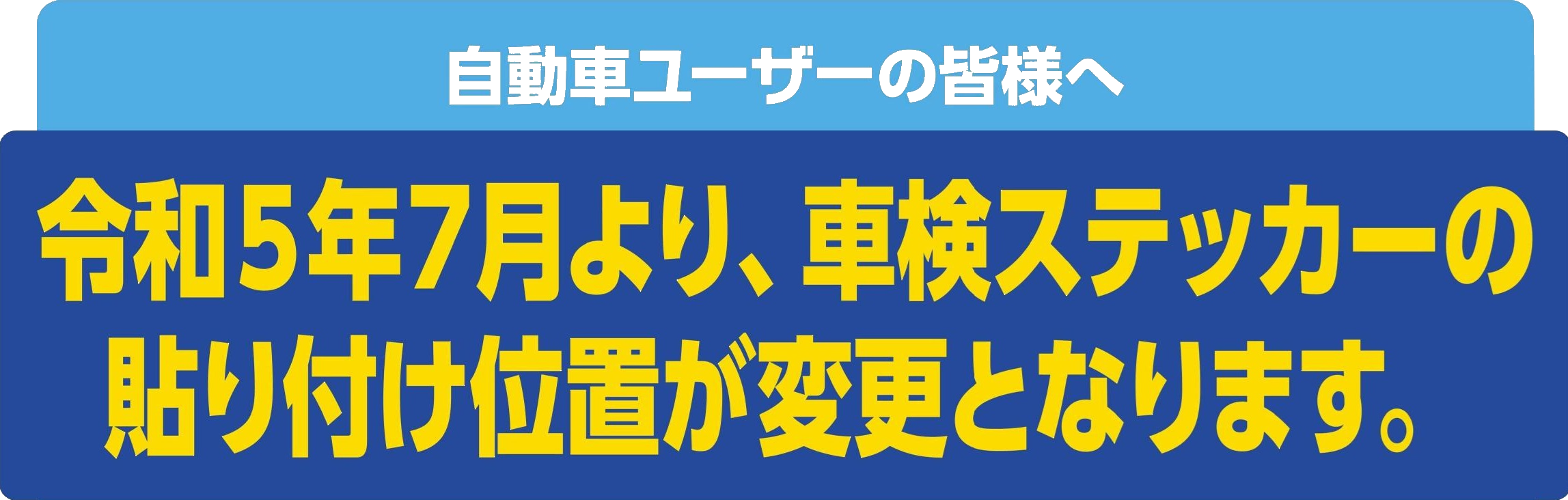・2023年(令和5年)7月より車検ステッカーの貼り付け位置が変更となります。 令和5年7月3日から検査標章 (ステッカー)の貼り付け位置